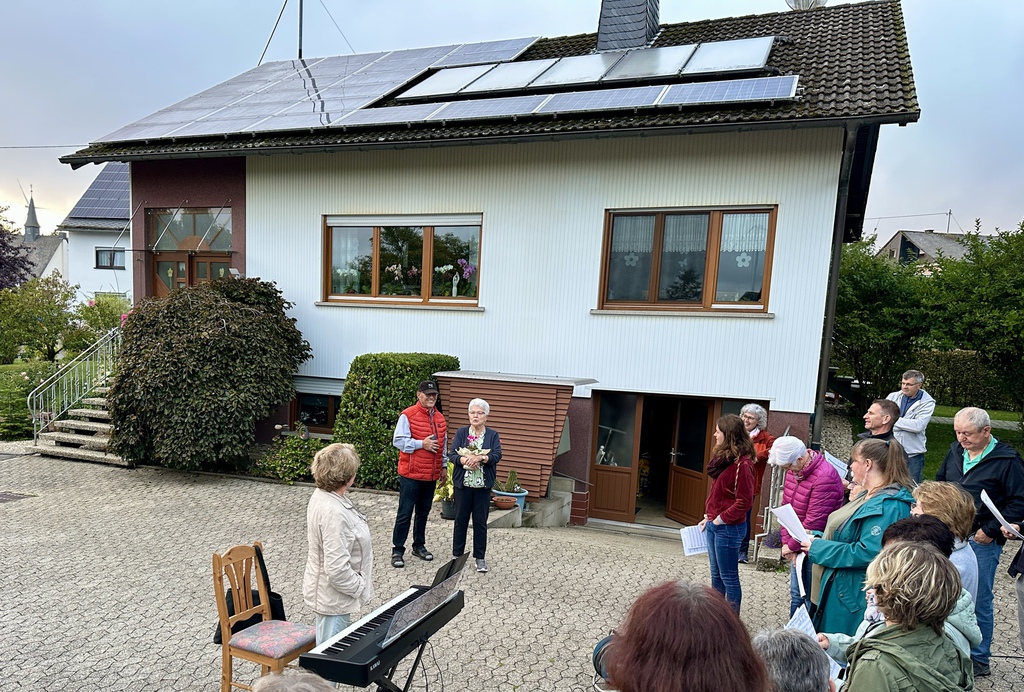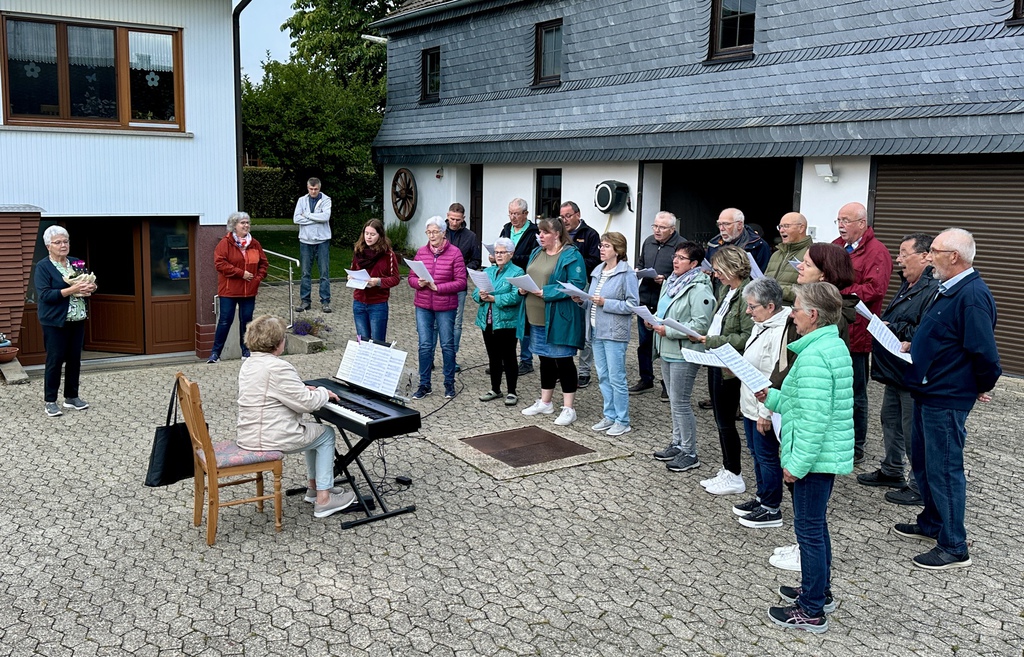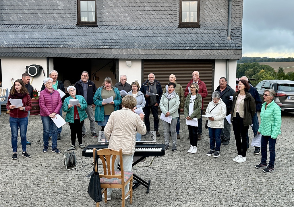 Am Dienstag, 2. Juli führte der Weg nach Benzweiler zu unserem passiven Mitglied Karl-Ludwig Kasper anlässlich seines 80. Geburtstags. Mit den Liedern "Das Lied der Berge", "Über den Wolken" und "Dorfkind" gratulierten wir ganz herzlich. In seiner Garage stärkten wir uns mit Würstchen und Salat, sowie diversen Kaltgetränken.