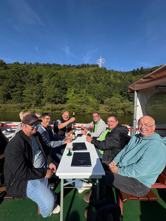 Am Samstag, 6. September fand unser diesjähriger Jahresausflug statt. Gestartet wurde um 8.30 Uhr und es ging nach Zell an die Mosel. Dort legte dann das Schiff in Richtung Bernkastel-Kues ab inklusive einer Schleusendurchfahrt. Dort angekommen wartete schon der Bus und fuhr uns nach Trier. Bei bestem Wetter konnte man die Fußgängerzone mit der Porta Nigra unsicher machen. Zum Abschluss ging es wieder Richtung Hunsrück zum "Tiefenbacher Hof" bei einem hervorragenden Abendessen. Nach geselligem Beisammensein konnten wir gestärkt den kurzen Heimweg antreten.